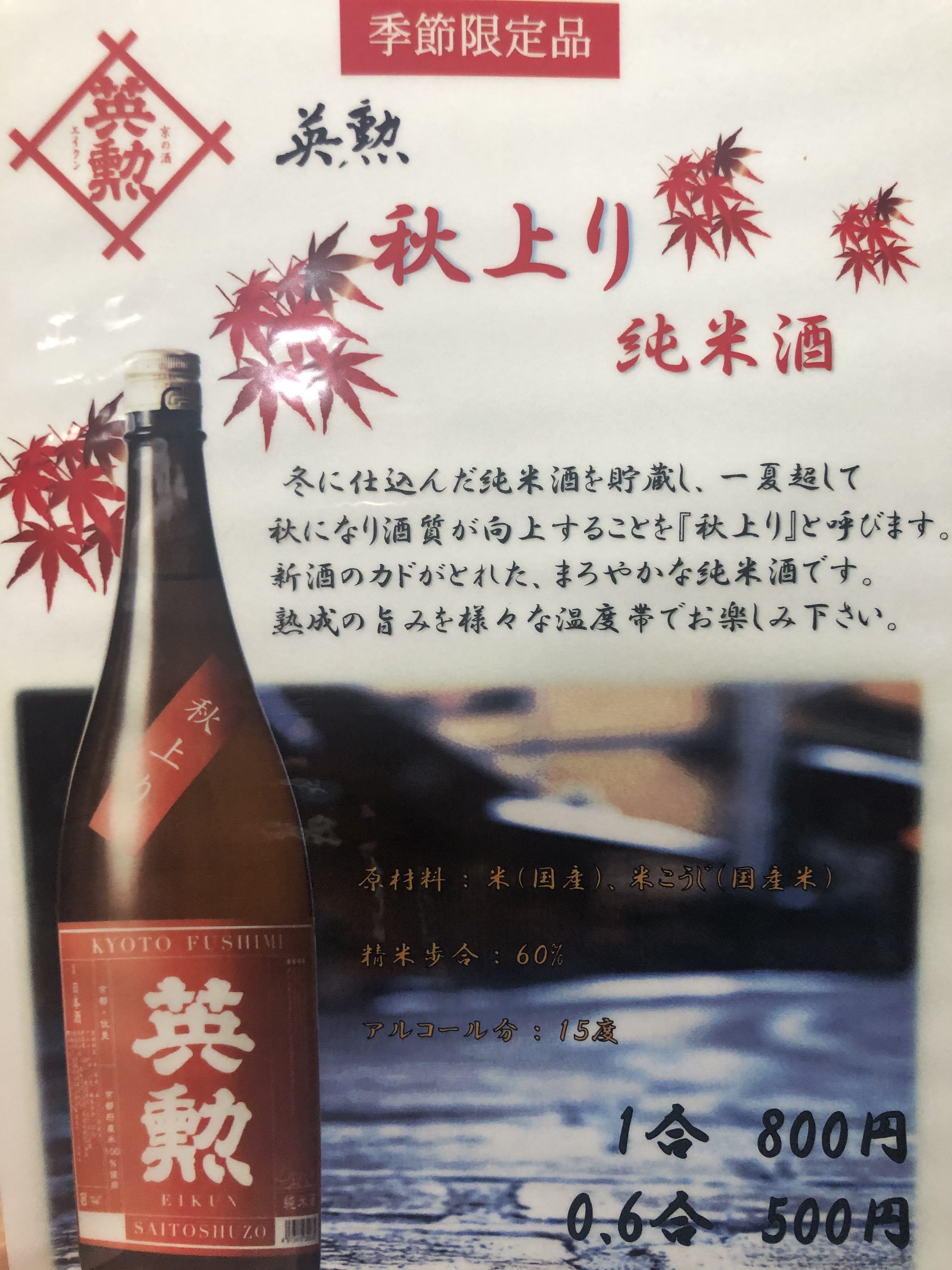 秋の日本酒入荷しました!!