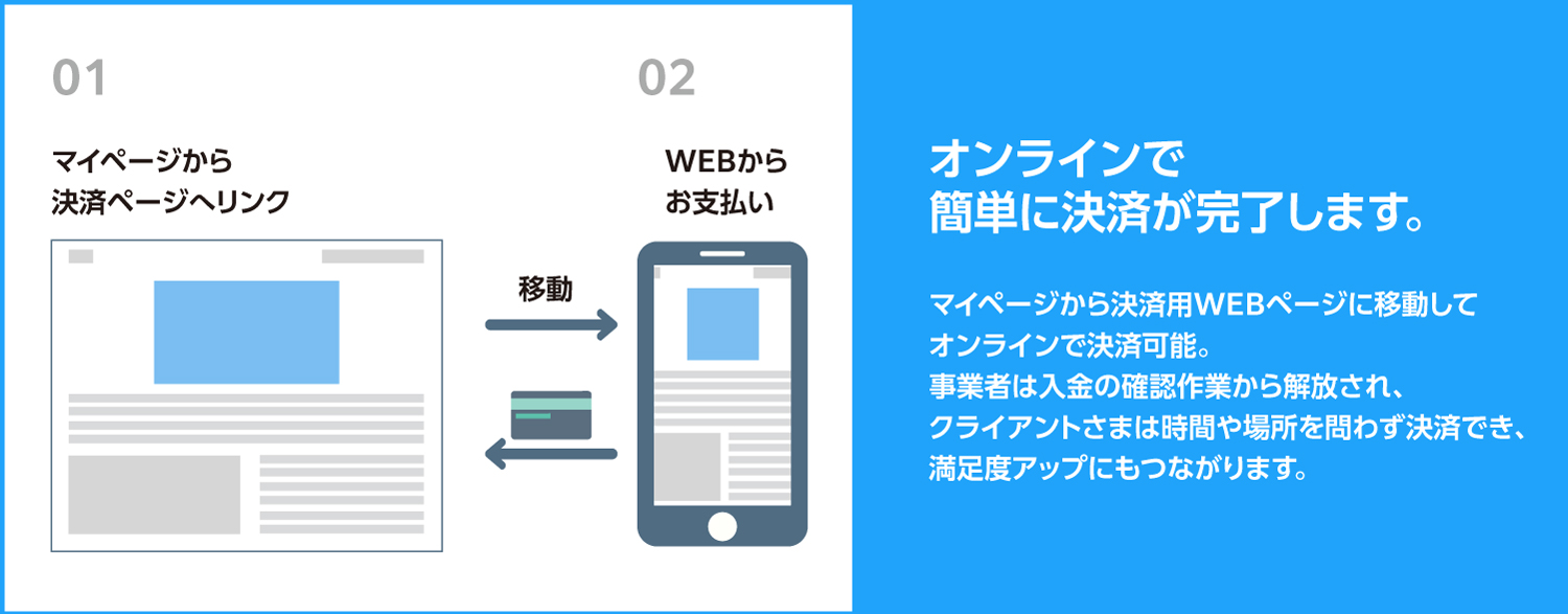 クライアントマイーページ機能を搭載し、クラウド間でオンライン決済が可能となり、請求・領収・納品などの帳票書類もマイページから確認・発行できます。経営に必要なツールをクラウド化することで、情報を瞬時に共有し、最新の経営戦略の構築が可能となります。
